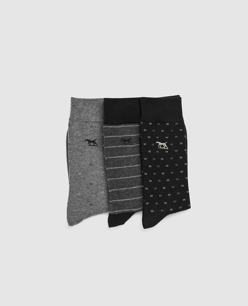 The Seacliff Multi Sock is a pack of 3 varying patterns, each pack curated into subtle tones of blacks/greys, blues or earth tones of chocolate and taupes. Knitted in a cotton blend with a perfect amount of stretch for comfort, and will compliment any outfit.