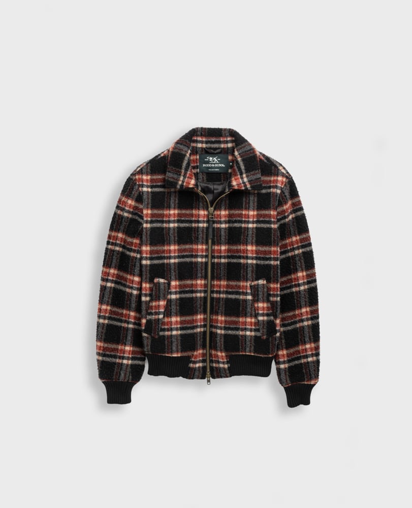 The bomber jacket lends an understated cool to winter dressing. This version is cut from an Italian wool blend, with a deep but subtle check. It's crafted with a turn collar, exposed metal zip front and welt pockets, then finished with ribbed cuffs and hem that stretches to fit and enhances the relaxed shape. A premium soft touch lining finishes the interior.