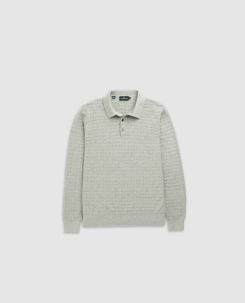 cotton yarn. With long sleeves and a subtle, all over grid jacquard stitch design, this