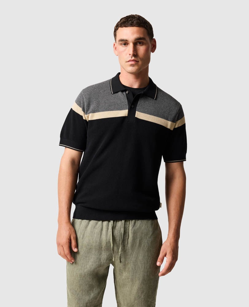 Designed with a nod to vintage athleisure, the Barret Reef, paneled stripe knit brings a refined heritage touch to summer dressing. Crafted in 100% Australian Good Earth Cotton, the fully fashioned knit construction lends a polished finish that feels modern. Breathable, lightweight, and designed in versatile colours this knit polo is easily adaptable from business to casual outfits.