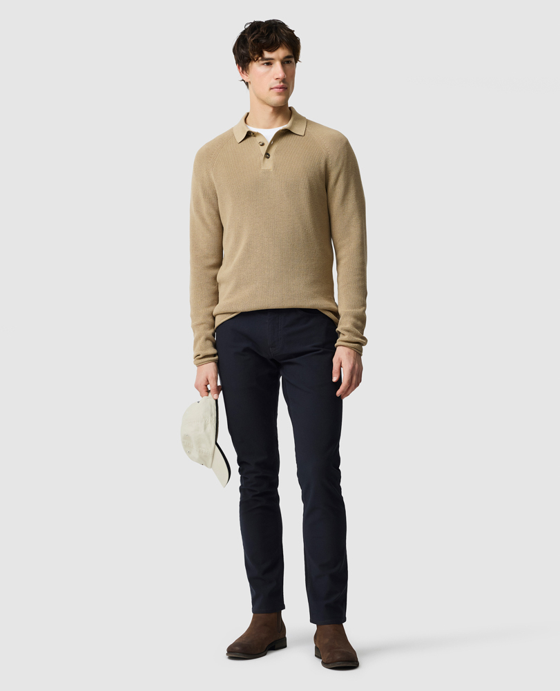 Add a modern twist to your look with this sophisticated knitted polo, crafted to look stylish on its own or layered. Designed with streamlined details for a sleek and polished look, combined with the raglan sleeve offers superior comfort.