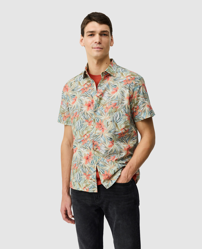 Embrace summer in our Riverina short sleeve shirt, adorned with a bold tropical print. This shirt is in our new weekend fit, designed for all day comfort. Crafted from the finest cotton by renowned Italian mill, Albini.