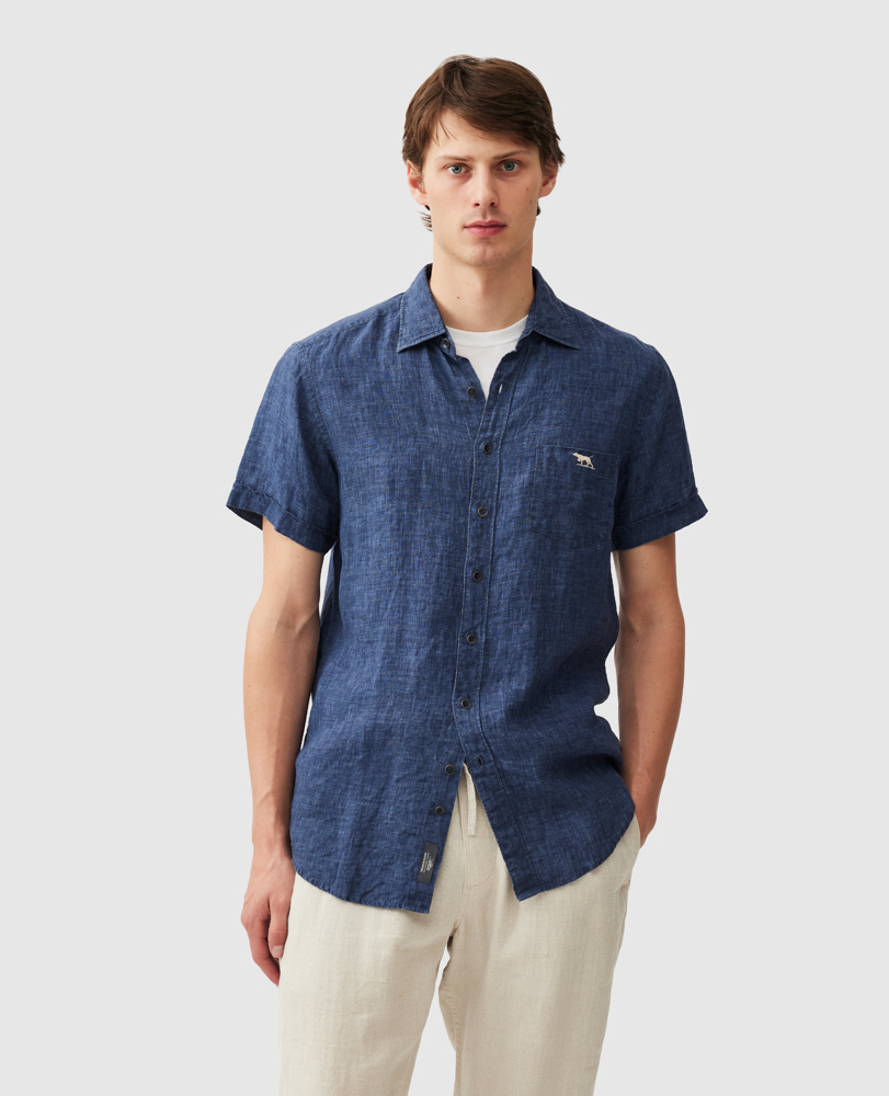 Spend summer in relaxed, easy going style with our short sleeve linen shirt which has been prewashed for softness. Made from premium linen sustainably sourced from France and Belgium and milled expertly in Italy, this lightweight and breathable shirt features a unique delave wash, which lends the fabric a slightly faded look. Cut in a contemporary fit, this shirt is finished with a chest patch pocket and painted metal buttons.
