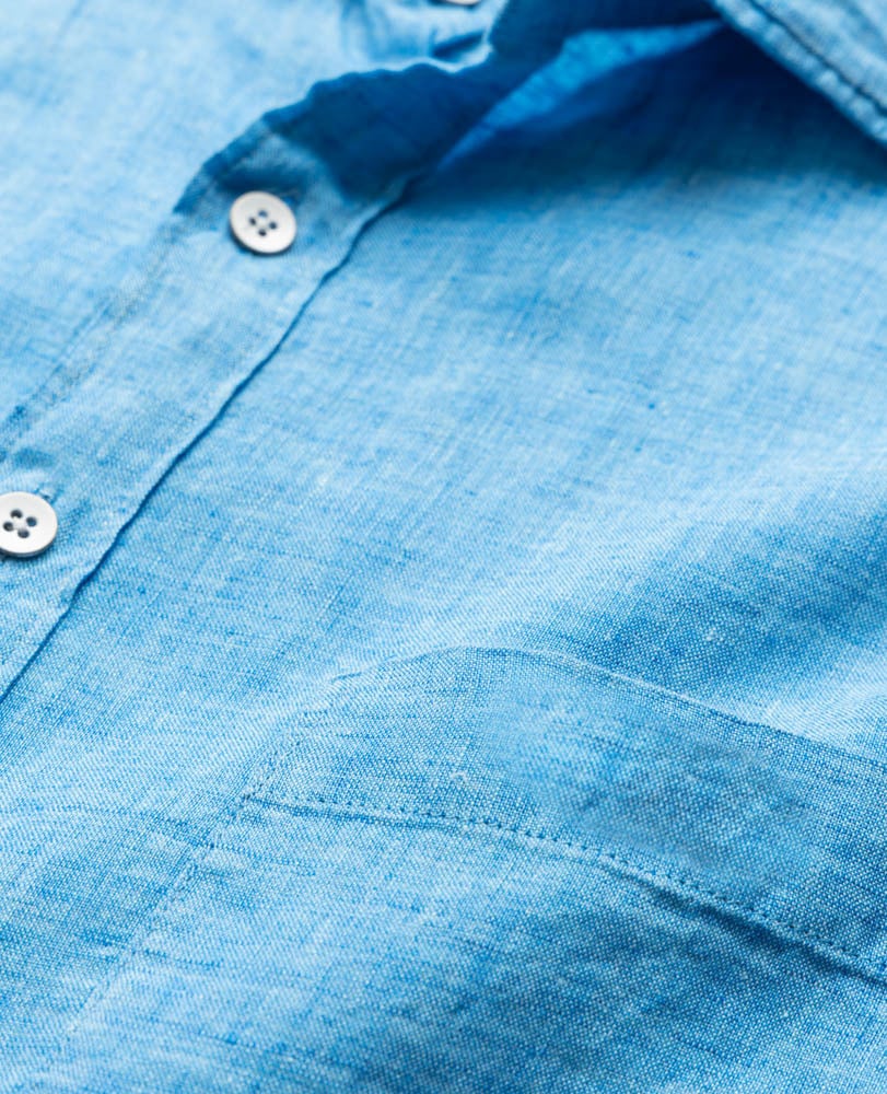 This shirt is woven from yarns that feature a unique delave wash, which lends the fabric a slightly faded look and soft feel. Milled in Italy, from premium linen harvested in France and Belgium and certified by European Flax. Pre-washed for easy going feel, the fabric will continue to soften over time and with each and every wash.
