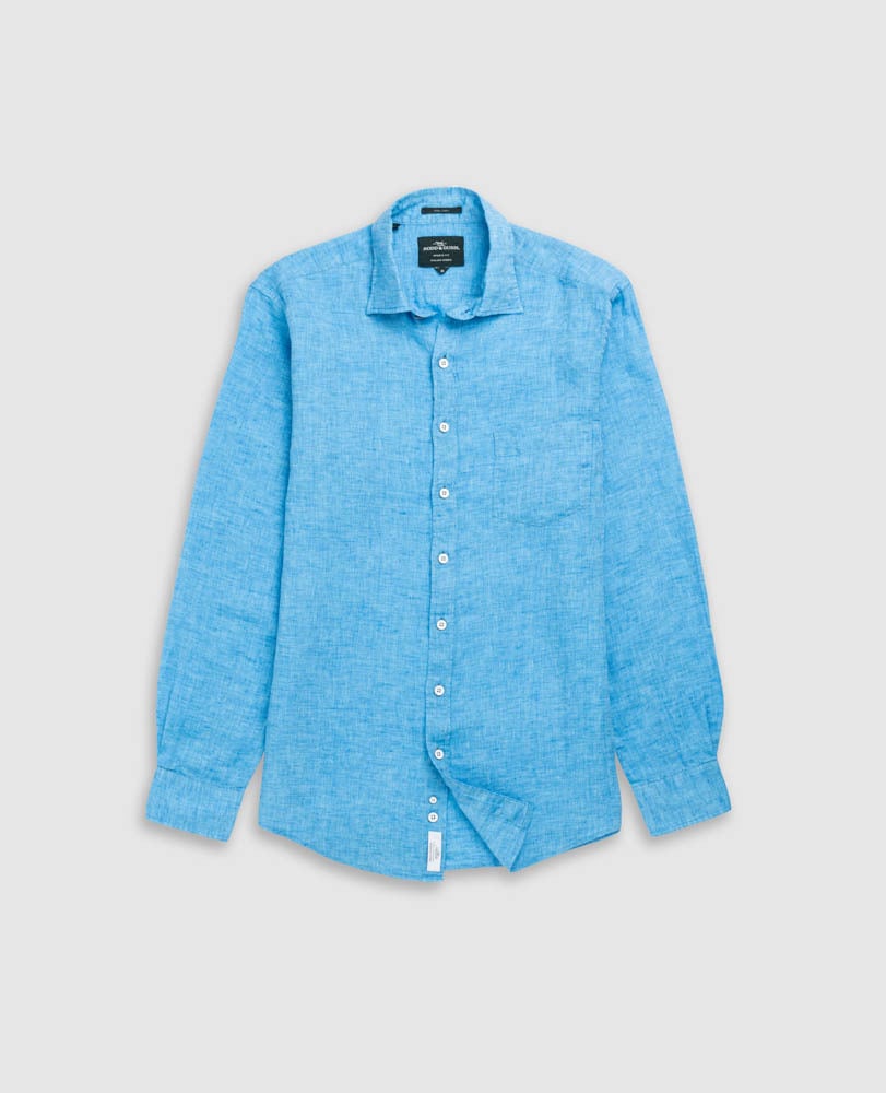 This shirt is woven from yarns that feature a unique delave wash, which lends the fabric a slightly faded look and soft feel. Milled in Italy, from premium linen harvested in France and Belgium and certified by European Flax. Pre-washed for easy going feel, the fabric will continue to soften over time and with each and every wash.