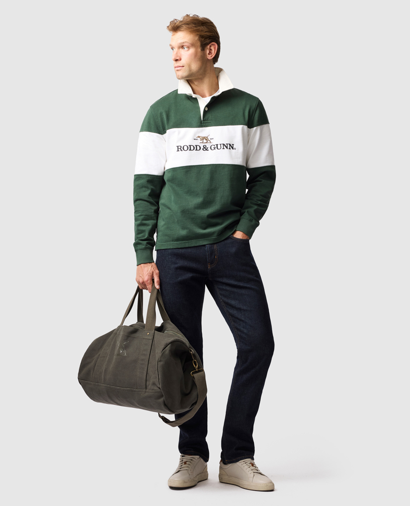 We pay homage to Rodd & Gunn’s heritage with this logo embroidered panelled rugby. It’s crafted from a mid-weight cotton jersey, with a traditional rugby neck construction. Pre-washed for softness and to prevent shrinkage.