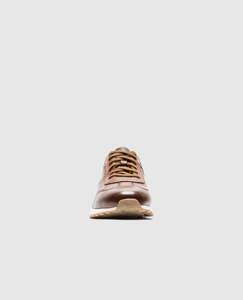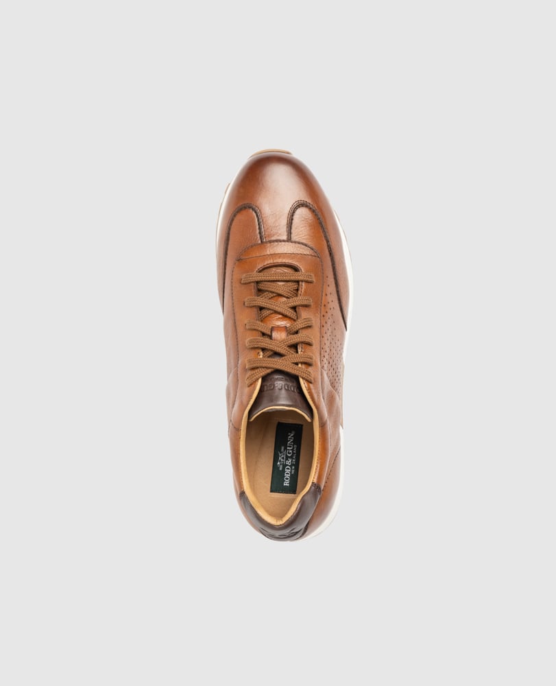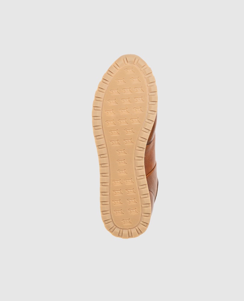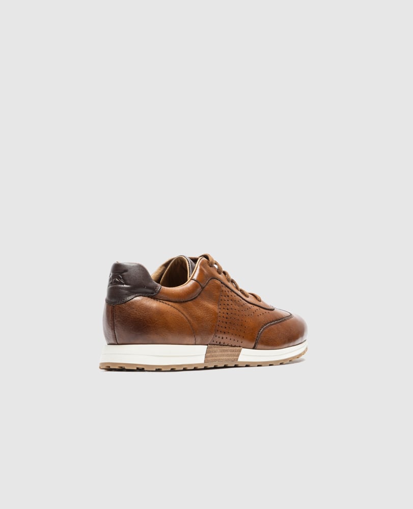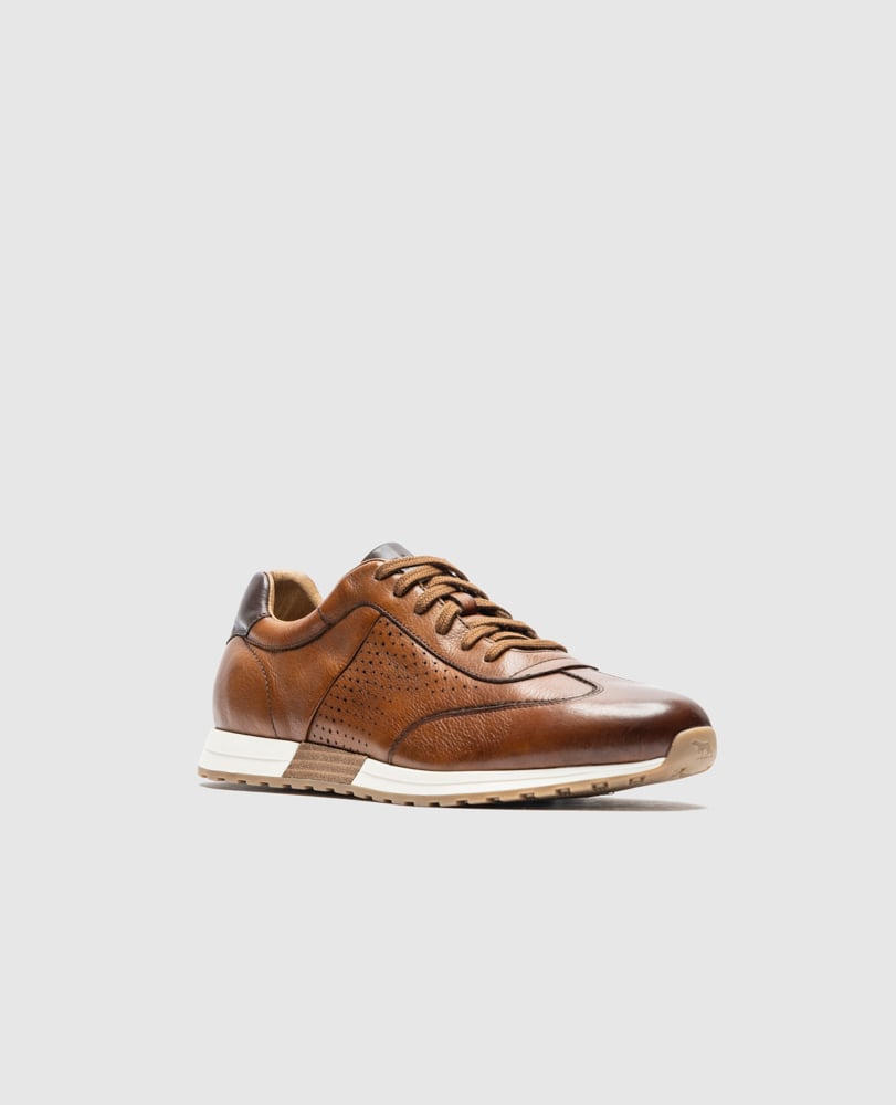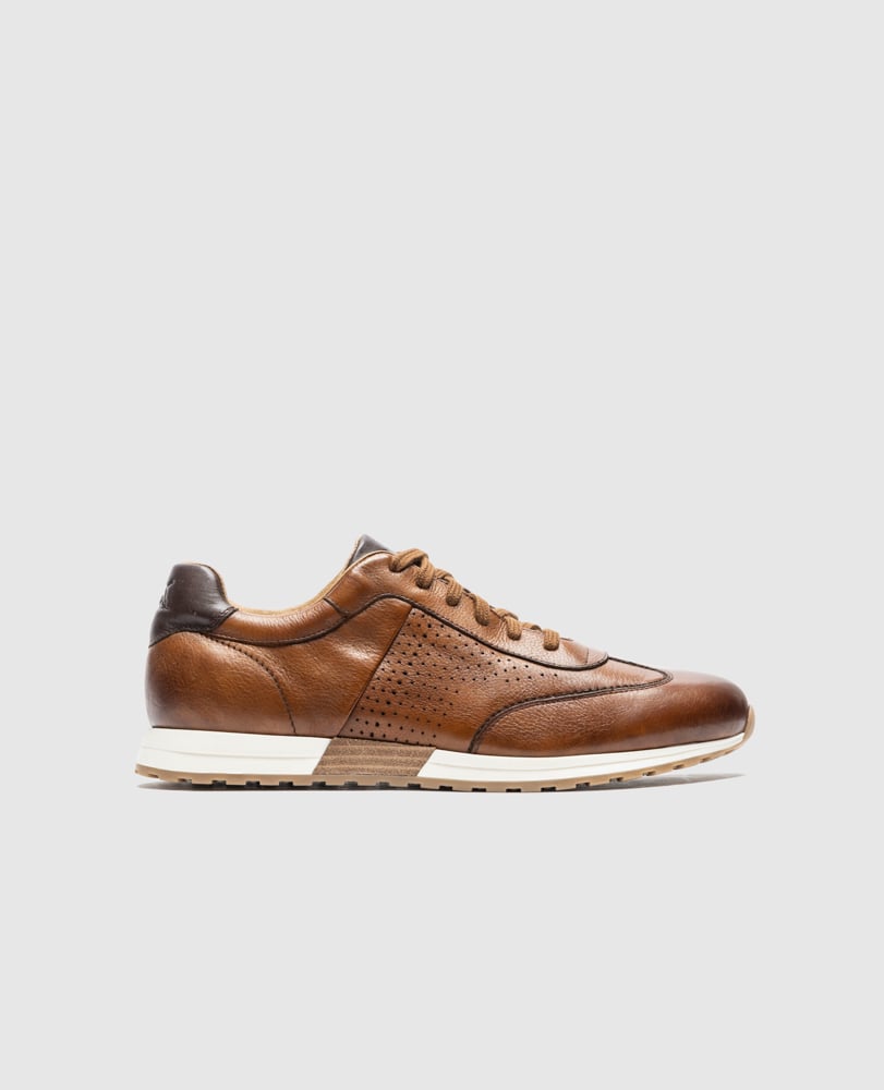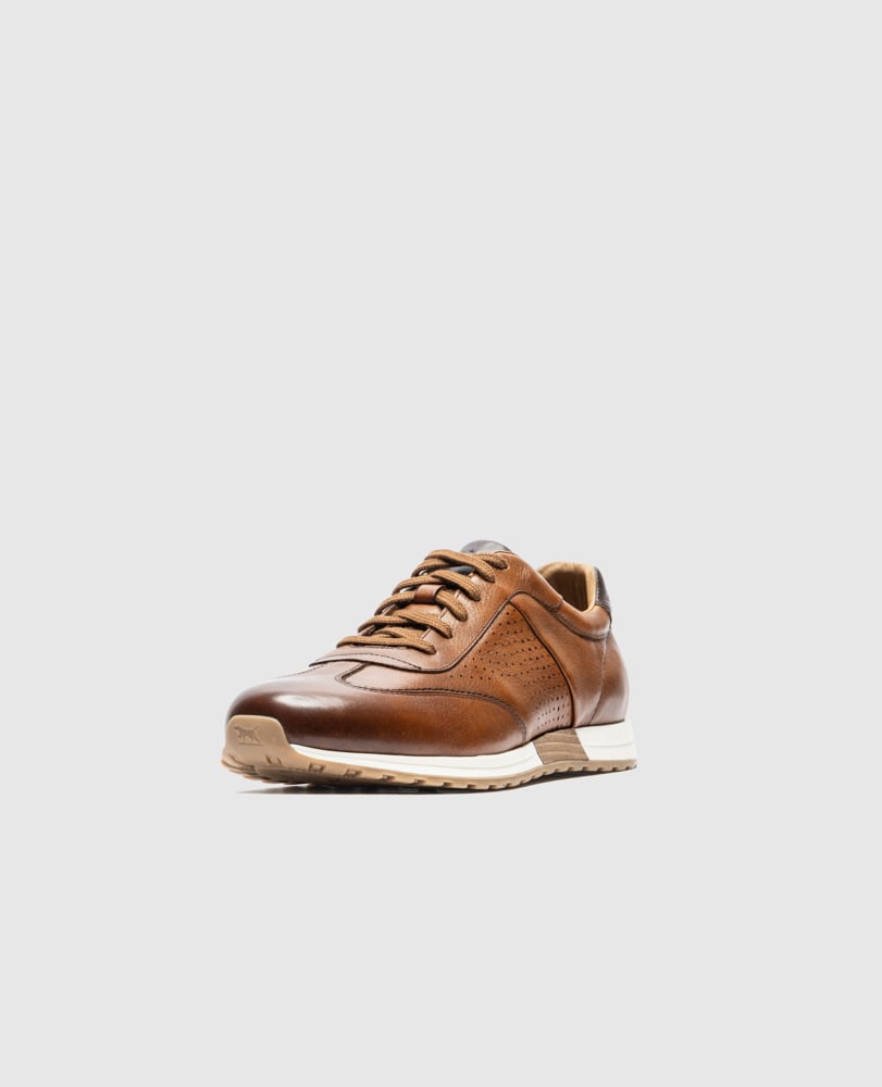 The Otago Sneaker is a retro inspired trainer crafted from soft milled (tumbled) leather, highlighting the natural grains of the leather. The dual density rubber outsole delivers a perfect balance of comfort and wearability and features a leather veneer insert into the waist of the unit. The upper detail features a perforated pattern that forms a stripe like effect. The Otago is leather, and fabric lined, and features a leather covered removable polyurethane footbed for superior comfort. The Otago is paired perfectly with Denim, chinos or shorts.