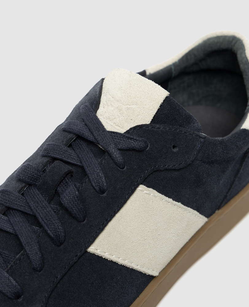 The Saxon Sneaker is a subtle nod to old school retro styling, made from silky suede uppers with contrast side stripe and trims, cemented and stitched to our flexible, comfortable gum coloured sponge rubber outsole. The upper is leather lined, teamed with a leather covered moulded removable footbed that sits above a hidden, blended layer of polyurethane, styrene and rubber that provides the ultimate comfort while assisting in energy rebound, delivering a more relaxed feel with less fatigue.
