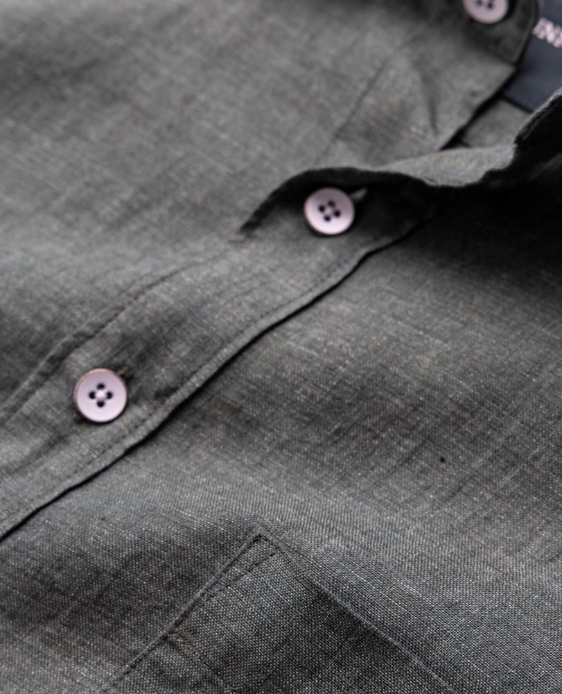 This shirt is woven from yarns that feature a unique delave wash, which lends the fabric a slightly faded look and soft feel. Milled in Italy, from premium linen harvested in France and Belgium and certified by European Flax. Pre-washed for easy going feel, the fabric will continue to soften over time and with each and every wash.