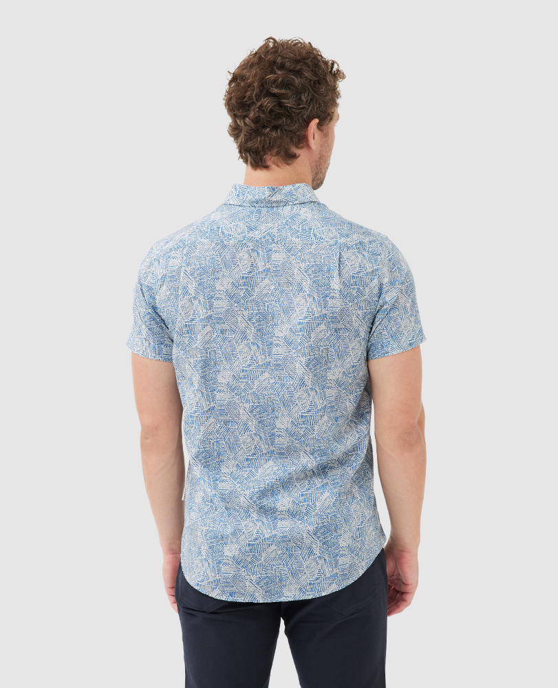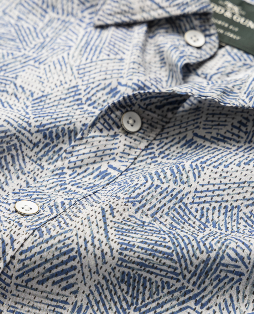 This short sleeve shirt is crafted from lightweight cotton yarns, perfect for sunny summer days ahead. Milled in Italy from the finest cotton yarns, and printed with an eye-catching abstract print ready for impending summer events.