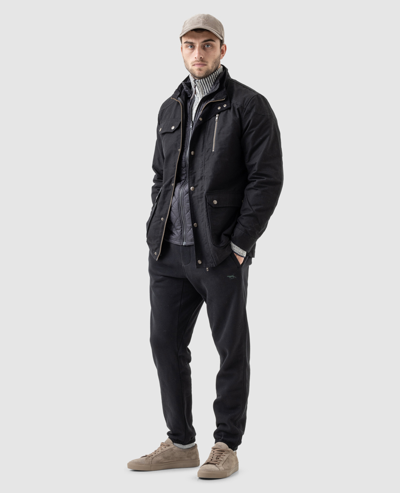 Wax coated Italian fabric field jacket. This jacket features a quilted inner warmer can be worn alone or zipped into the shell when the temperature takes a dive, providing excellent protection against the cold.
