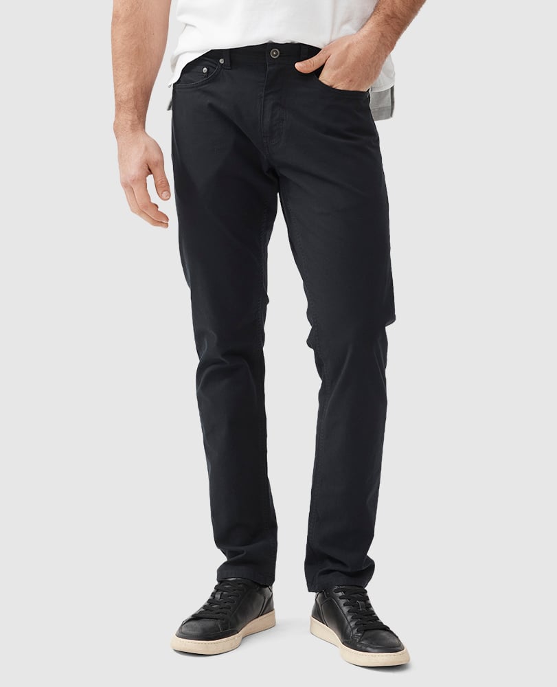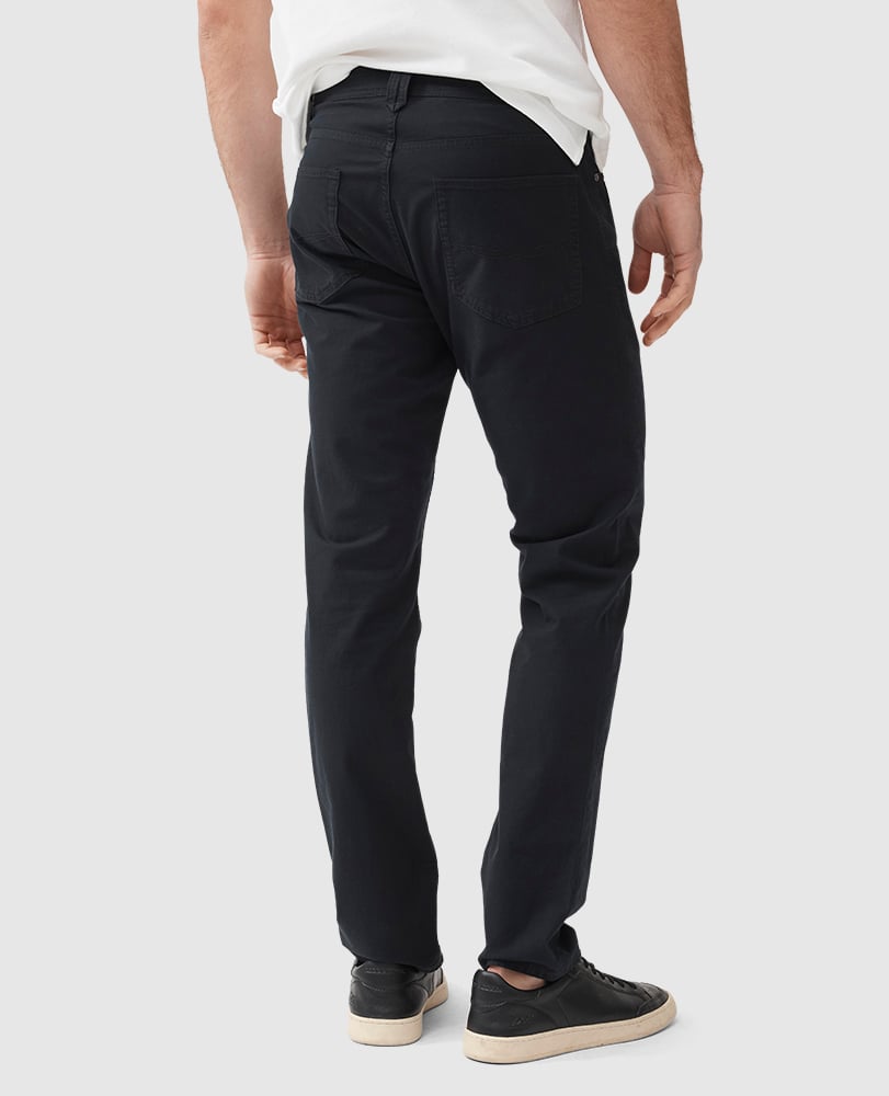 Dressier than denim jeans, this fabric version features a sophisticated micro-textured cotton, enriched with a little stretch for comfort. Cut in a flattering mid-rise and straight leg, these versatile jeans are simplistic yet smart, and broken in with a heavy garment wash.