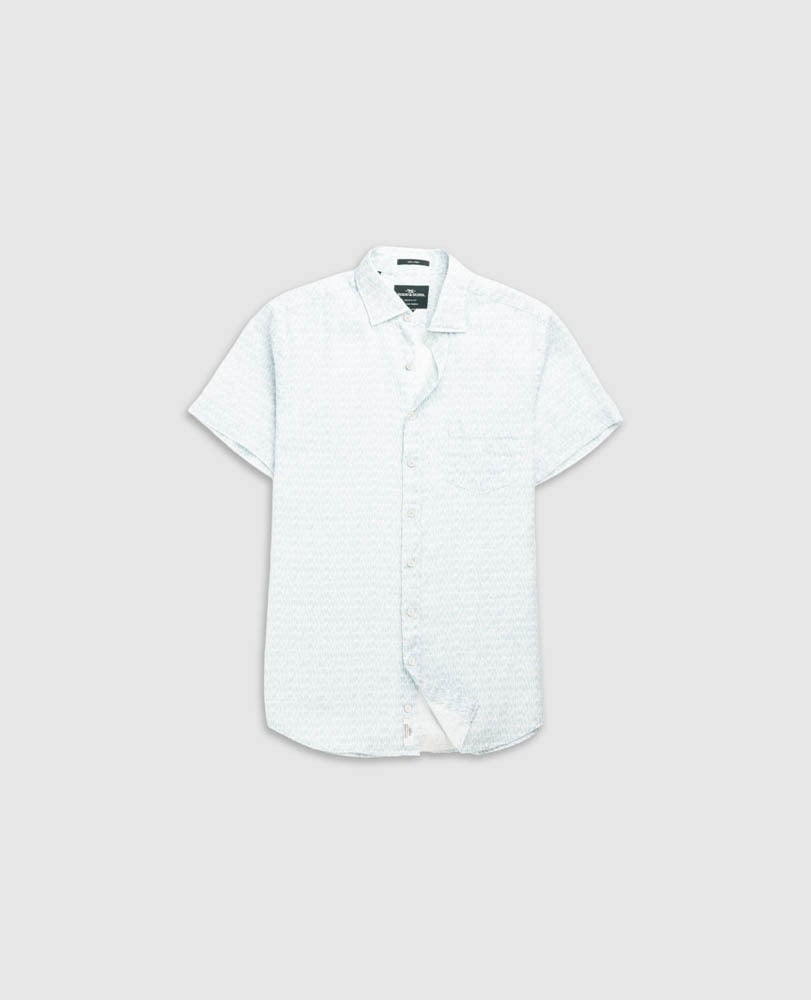 Our Glenene short sleeve shirt features a refined micro print, offering a polished, understated look with a touch of texture. Designed in our sports fit and crafted from 100% linen, this shirt will keep you cool while elevating your holiday look whether you're going out for dinner or relaxing poolside.
