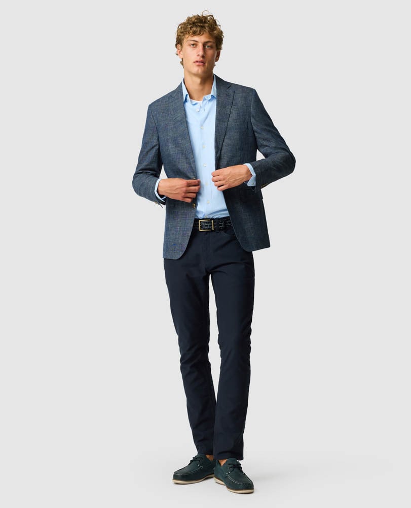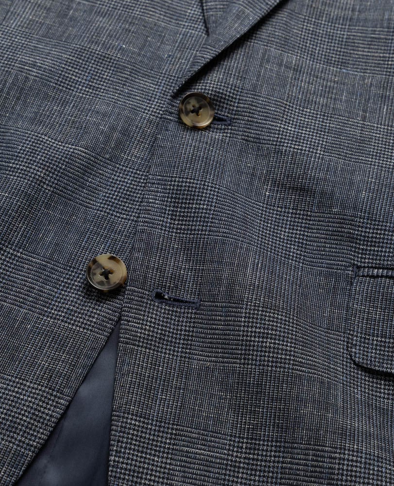 This jacket is crafted from a linen-cotton blend in a micro-textured houndstooth check weave. Expertly crafted in our deconstructed make with natural shoulder padding, which lends the jacket a relaxed yet sophisticated look.