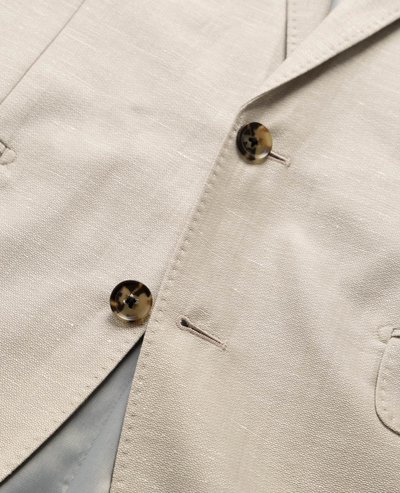 This jacket is crafted from a wool-linen blend in a micro-textured weave. Expertly crafted in our deconstructed make with natural shoulder padding, which lends the jacket a relaxed yet sophisticated look.
