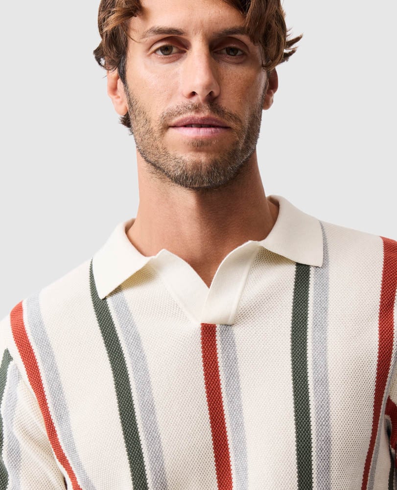 Make a statement this summer with The Royce Hill knitted polo that features a bold vertical stripe. Fully fashioned in 100% Australian Good Earth Cotton, this polo strikes the perfect balance of comfort and style.