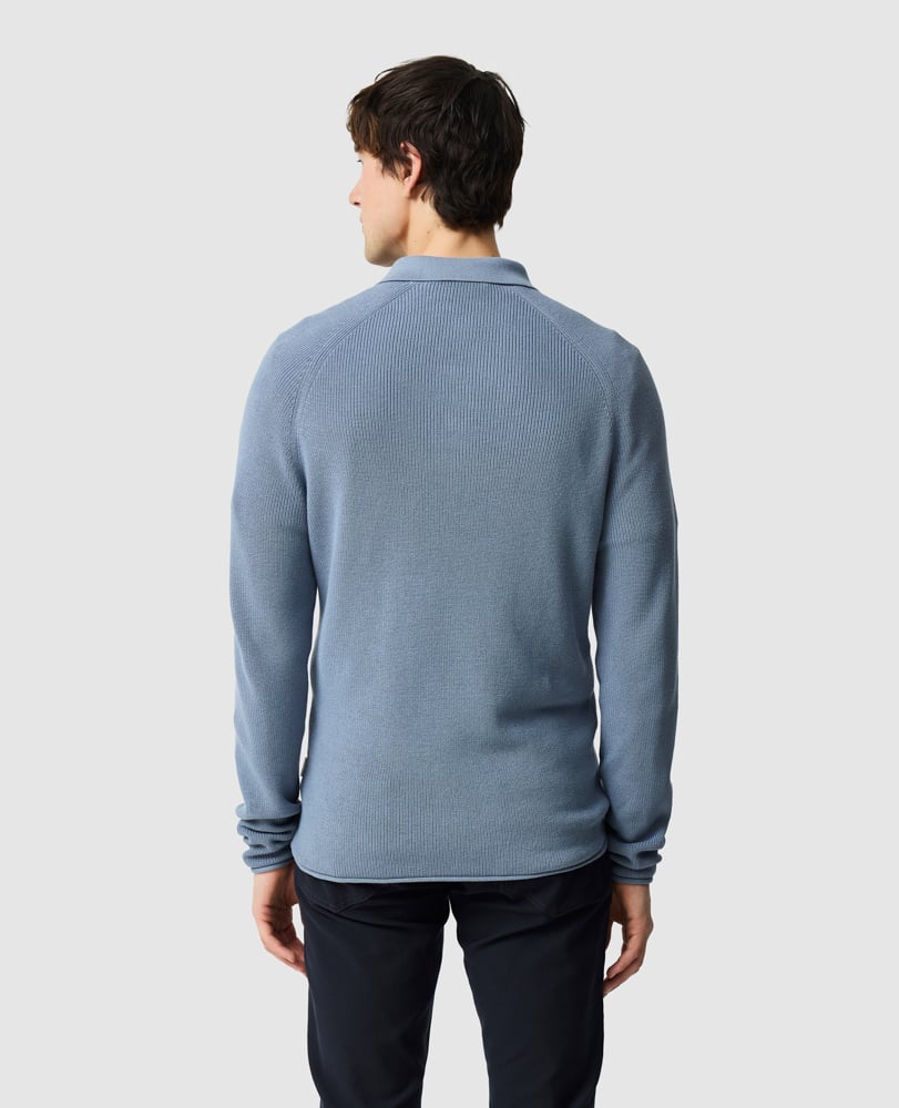 Add a modern twist to your look with this sophisticated knitted polo, crafted to look stylish on its own or layered. Designed with streamlined details for a sleek and polished look, combined with the raglan sleeve offers superior comfort.