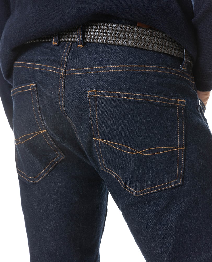 Rich, dark denim imbues these jeans with a vintage look, whilst a slim fit gives a modern silhouette. Offering versatility with the effect of raw denim, this jean has been finished with a rinse wash to prevent colour transfer.