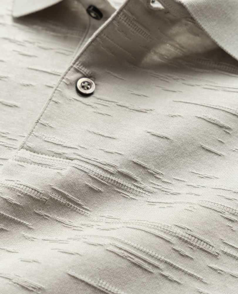 This polo is crafted from a vintage jacquard texture Turkish cotton yarn featuring a cool-touch mercerised finish. Lightweight and breathable, it's the perfect substitute for a shirt on smart casual days.