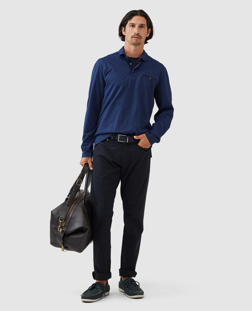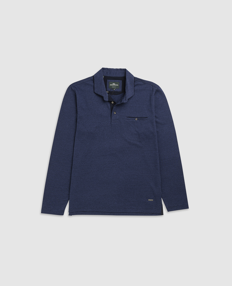 This classic long-sleeve polo is made from 100% Turkish cotton for a soft and comfortable feel. It features a stylish jacquard body, a self-fabric collar with collar stand, contrast jersey inner placket and a button-up chest pocket for a touch of detail.
