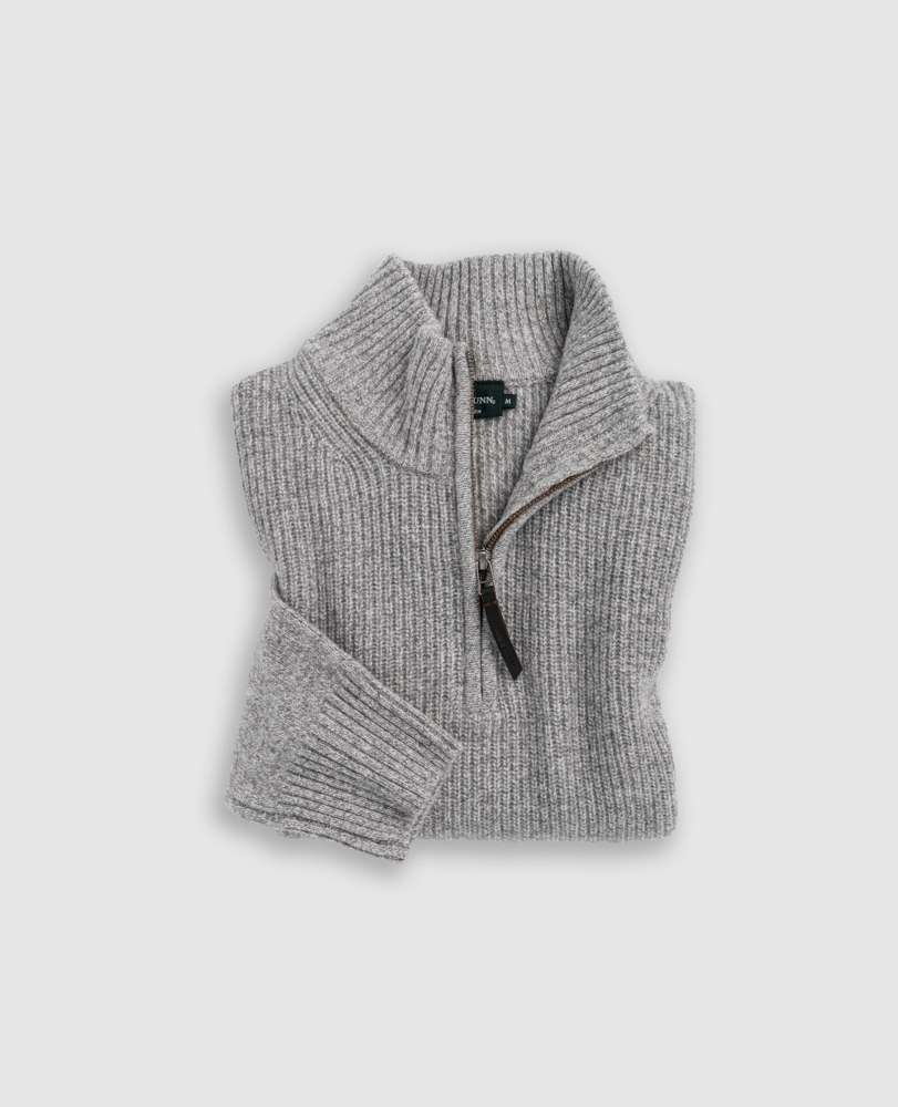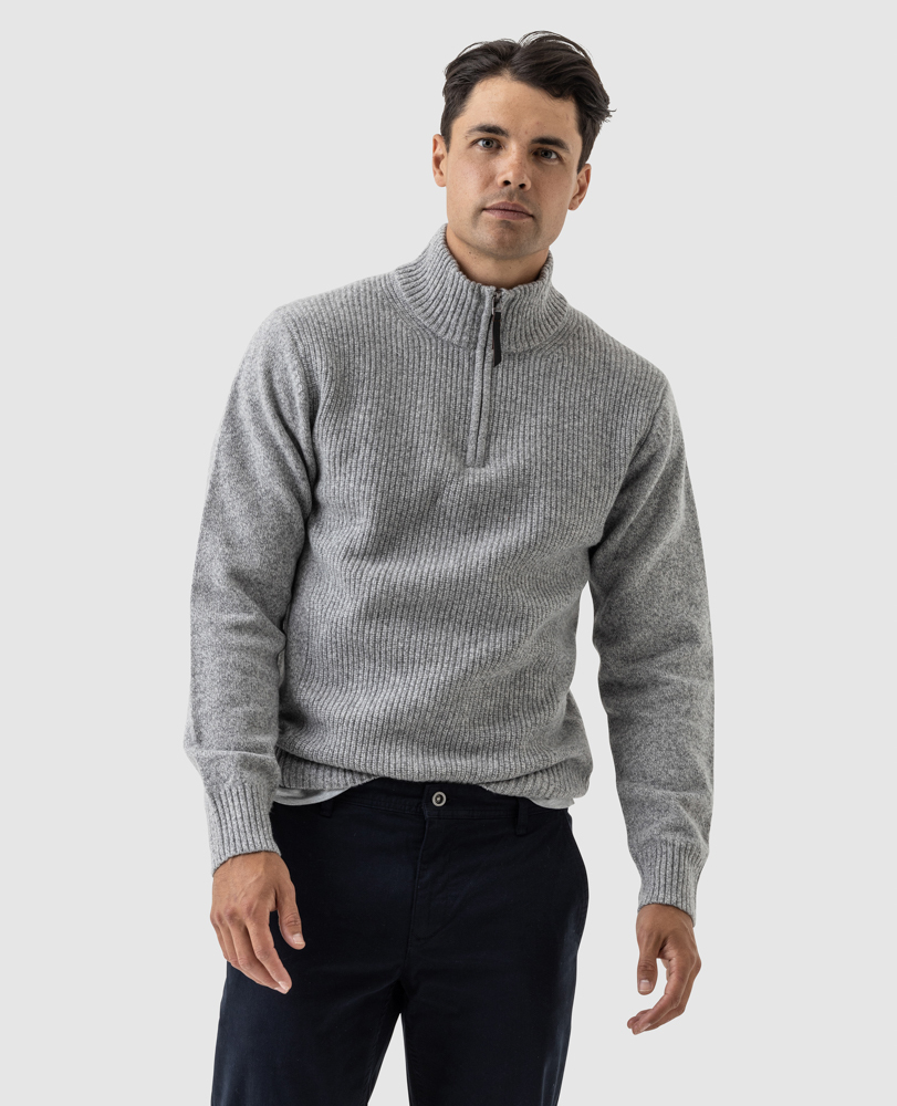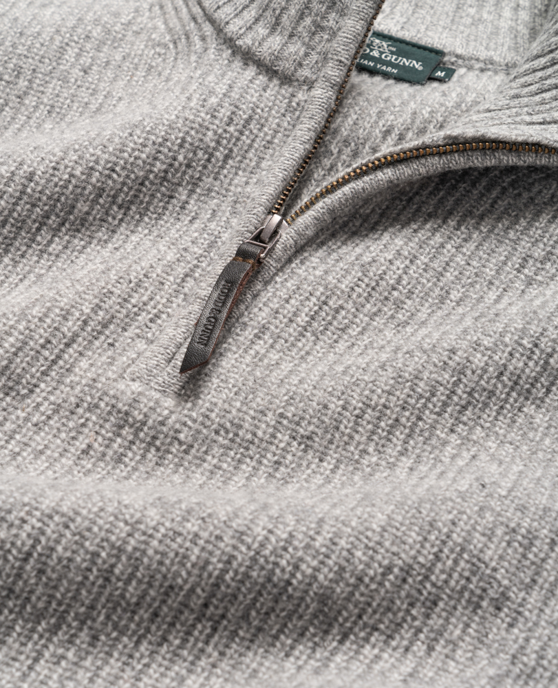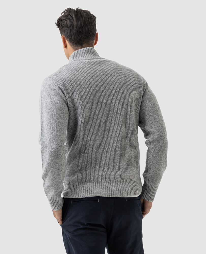 This sweater is expertly crafted from an extrafine lambswool, textured with a melange yarn. Spun in Italy, knitted with a rib texture on the body, jersey side seams and sleeves, and trimmed with premium YKK zip front.