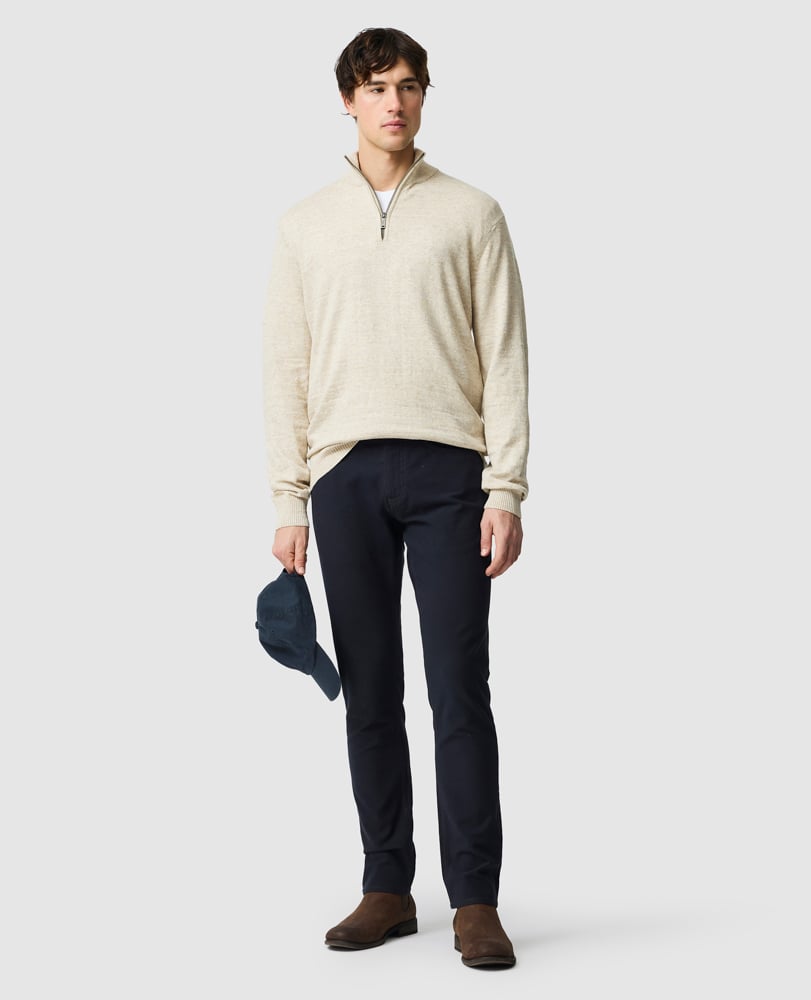 With a versatile 1/4 zip neck collar and rib back, this long-sleeve knit is made from soft and lightweight Australian cotton. The melange yarn adds depth of color and texture, making it a comfortable and stylish piece.