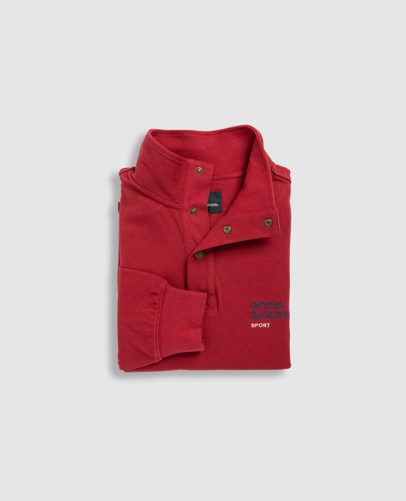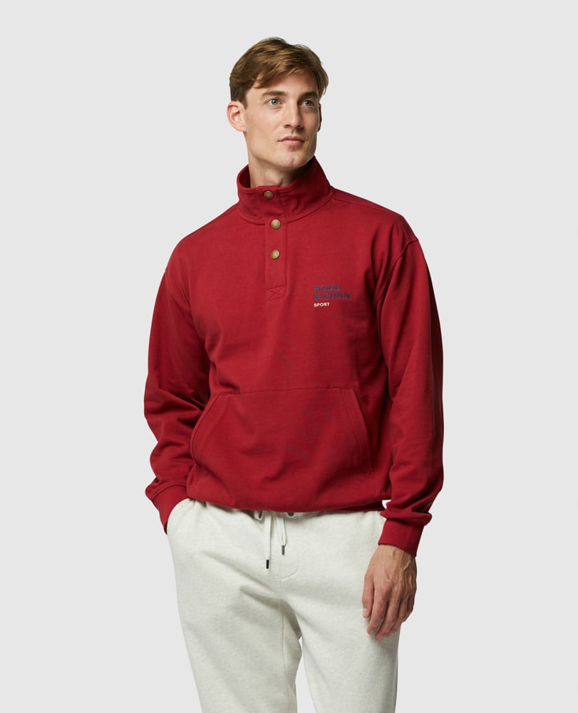A mid weight mock neck sweat, crafted in our heavyweight rugby jersey fabric. Crafted from premium breathable USA cotton yarns, in an ideal transeasonal weight that makes layering easy. The neck features a sporty three press-stud placket, and pouch front pocket.