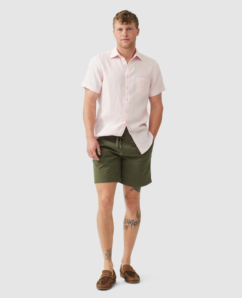 When it comes to staying comfortable in warm weather, nothing beats linen. This lightweight and easy-to-wear version is crafted from premium Irish linen and a soft delave wash.