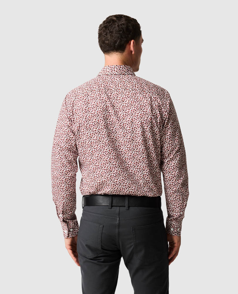 This lightweight poplin shirt is well-appointed with premium cotton yarns and woven in Europe. This shirt fabric features an eye catching ink blot pattern, which is sure to make a statement and is prewashed for softness.