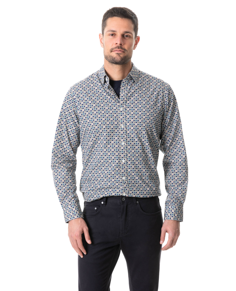 This geo-floral print shirt is crafted by Italian mill Albini, who have created unique fabrics for over a century. A unique way to retire checks and stripes, it's printed in an versatile scale ideal for layering over the colder months.