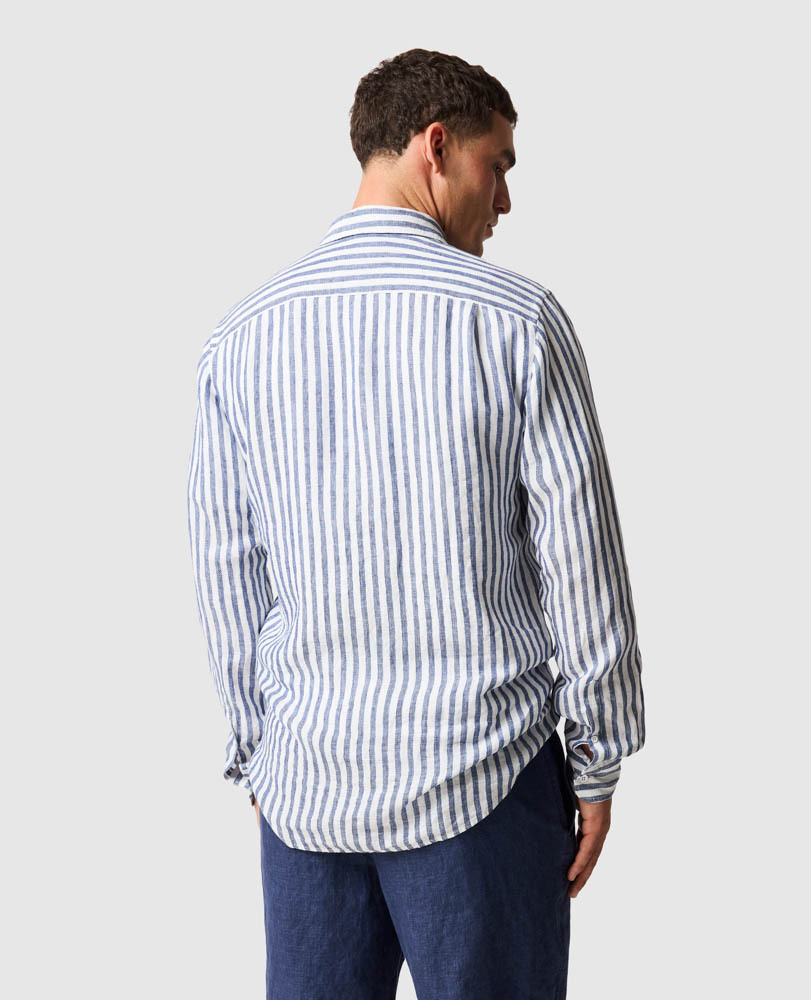 The Seadown shirt is crafted from premium linen, milled in Italy by the fabric masters, Albini. Featuring vertical stripes on a fresh, white base and pre-washed for an easy going feel, the fabric will continue to soften over time and with each and every wash.