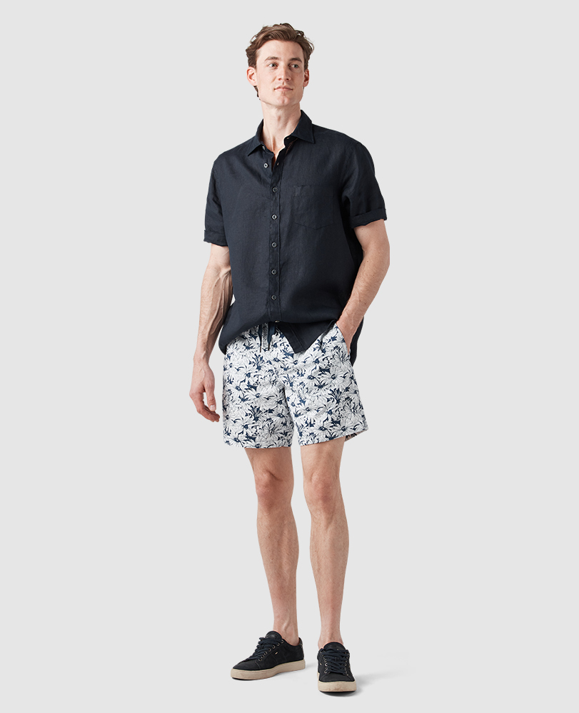 These relaxed shorts are a versatile go-to for your wardrobe. They're crafted from an easy care cotton and printed with an eye-catching flower print. Detailed with an elasticated waist, drawcord, inseam pockets, and prewashed for softness from the word go.