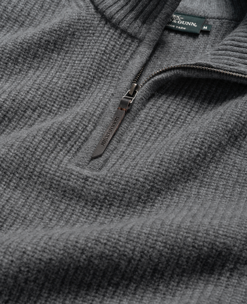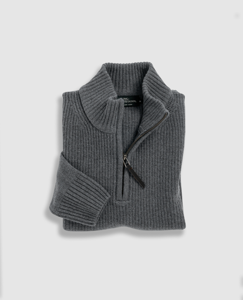 This sweater is expertly crafted from an extrafine lambswool, textured with a melange yarn. Spun in Italy, knitted with a rib texture on the body, jersey side seams and sleeves, and trimmed with premium YKK zip front.