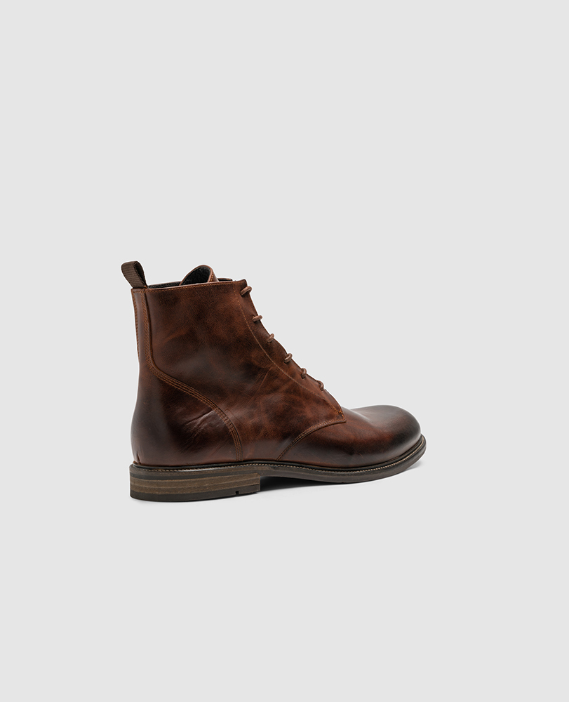 The first element you notice about the Portal boot is the stunning, burnished, antique finished European leather, rich in colour and soft in feel. The dressier silhouette without a collar means this versatile boot can be effortlessly worn as a dress or casual boot. The premium leather upper is leather lined, atop of our two-tone antique finished rubber sole.