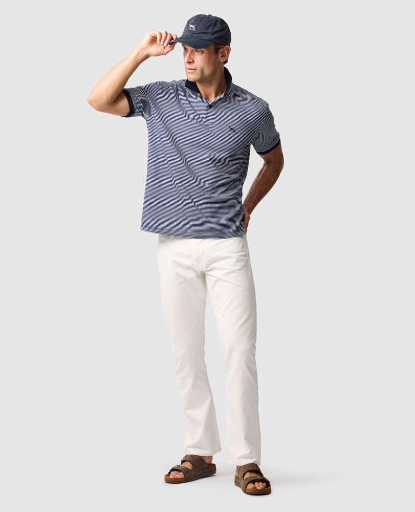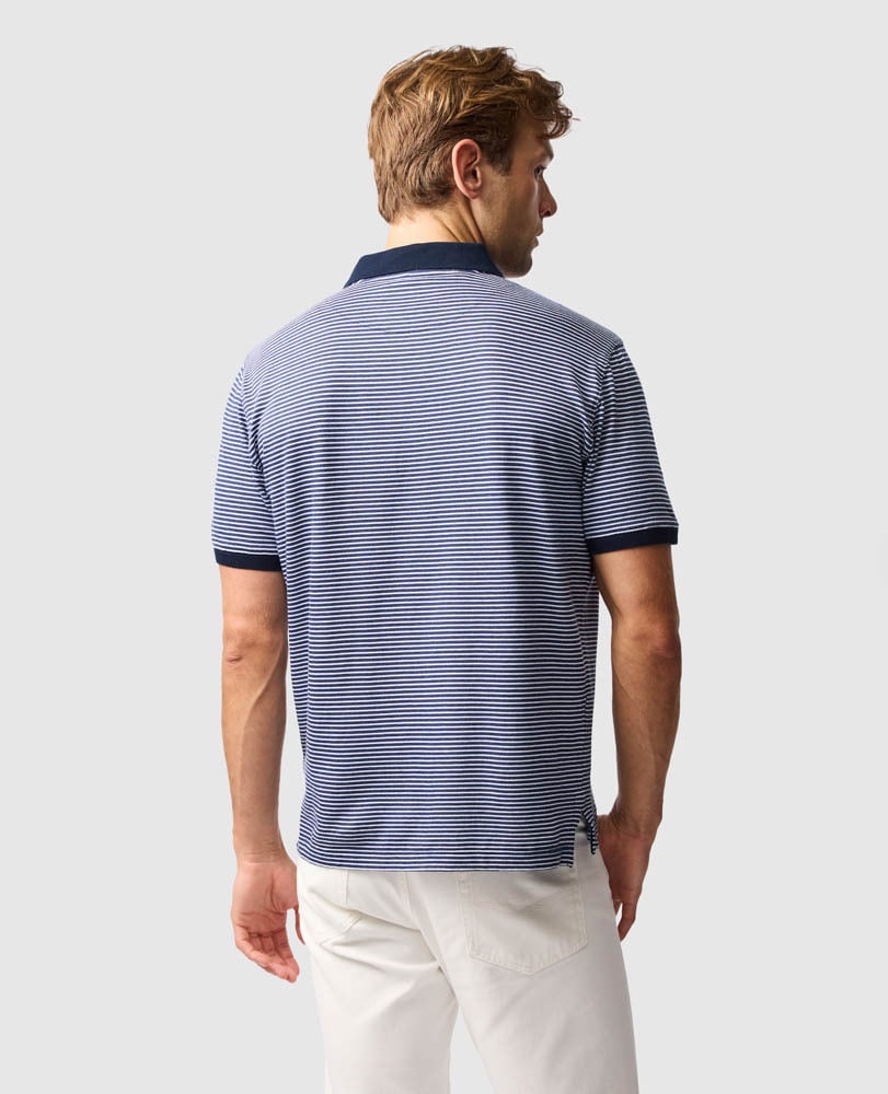 This lightweight jacquard polo features classic stripes on a micro two-tone stitch, crafted from pure cotton that's been mercerized for exceptional softness. Effortlessly versatile, you can style this polo for a laid-back look or a sharp, sophisticated edgeeither way, you can't go wrong.